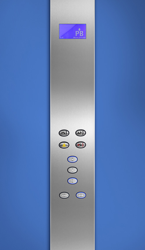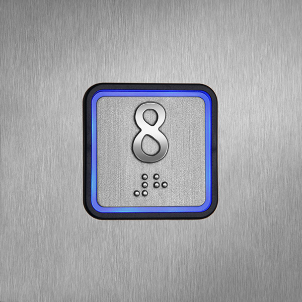 Los pulsadores han sido diseñado exclusivamente por Automac, poseen números en alto relieve y alto contraste en acero y el registro es de alta luminosidad con opción en rojo o azul en todo el borde.