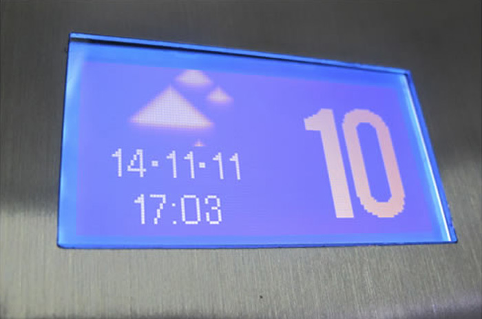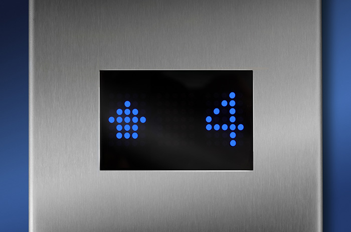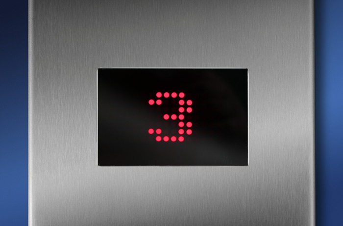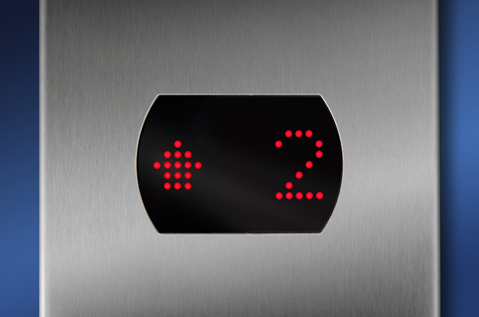 Muestran piso, dirección de viaje y códigos de estado del ascensor. Se conectan sólo con tres cables. Con interfase autónoma A4000 pueden instalarse en cualquier ascensor.