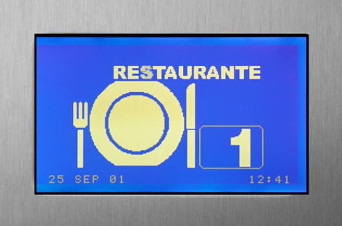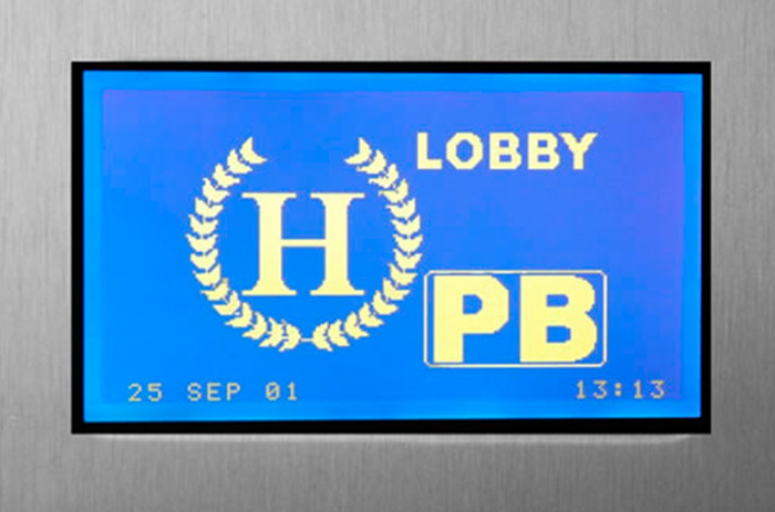 Los indicadores gráficos de posición LCD, son indicadores de cristal liquido de alta luminosidad, azul y ambar. Pueden mostrar gráficos y textos determinados por el usuario además de piso, dirección de viaje, reloj, códigos de estado del ascensor.